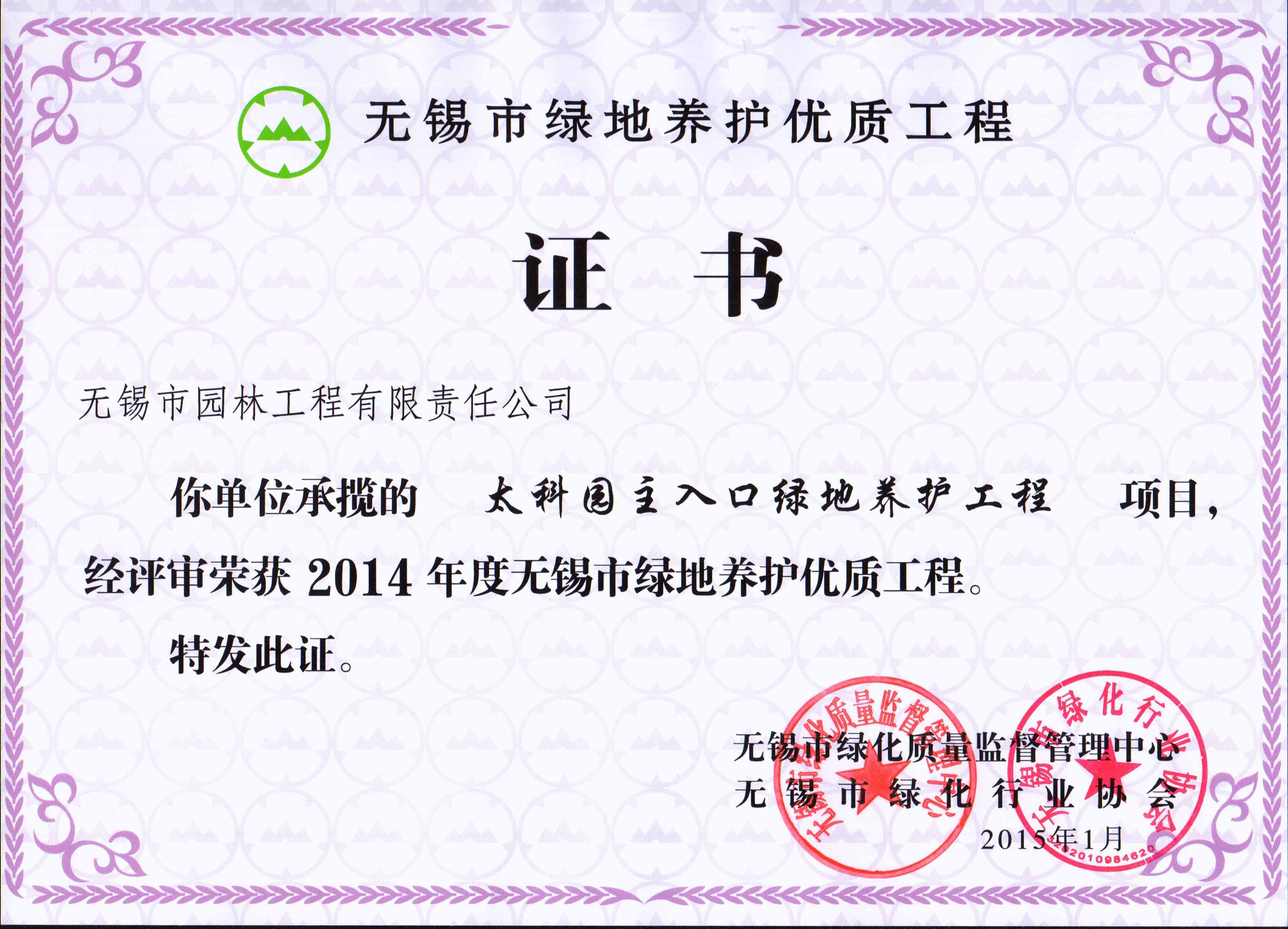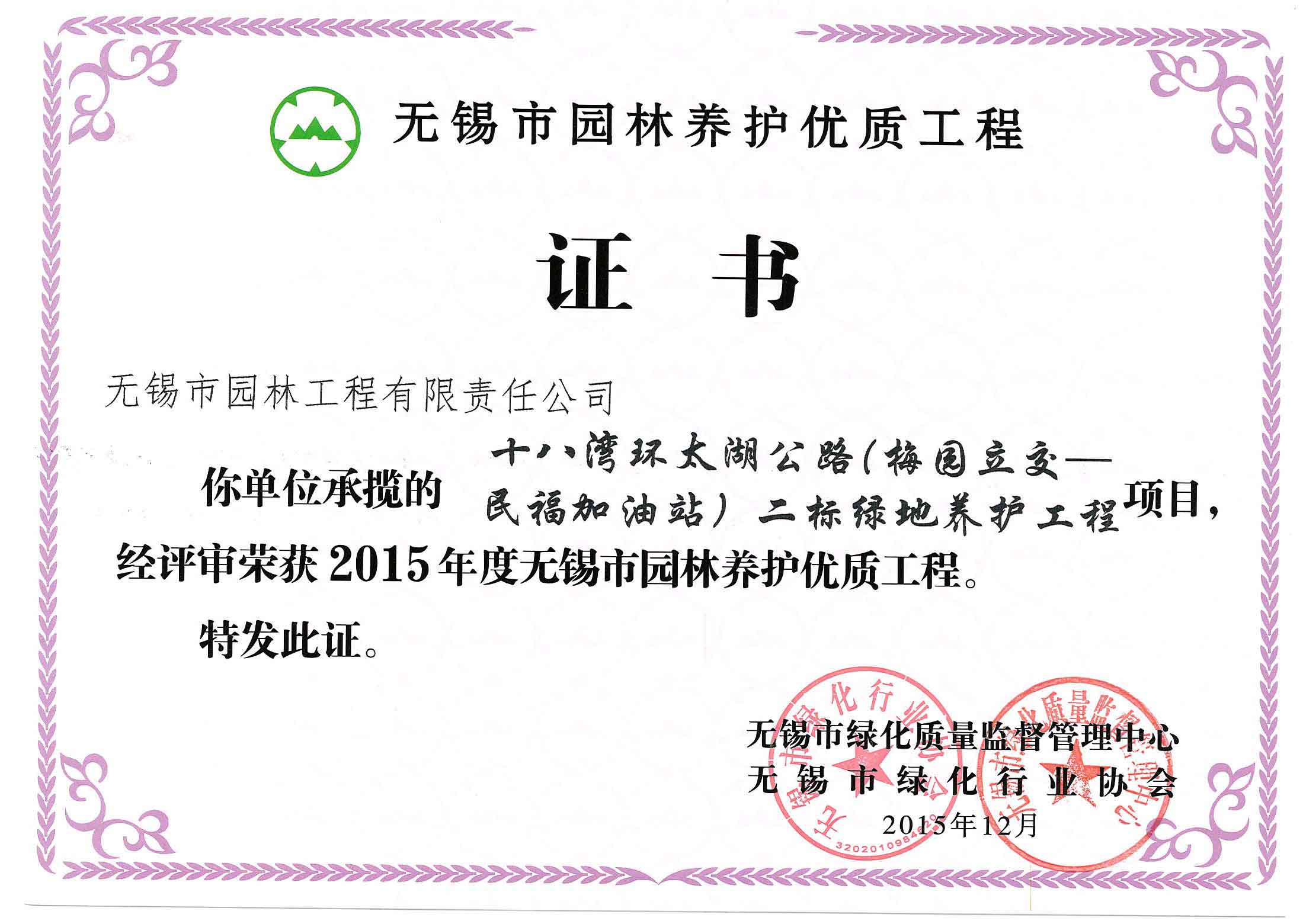 2015年度無錫市園林綠化明星企業