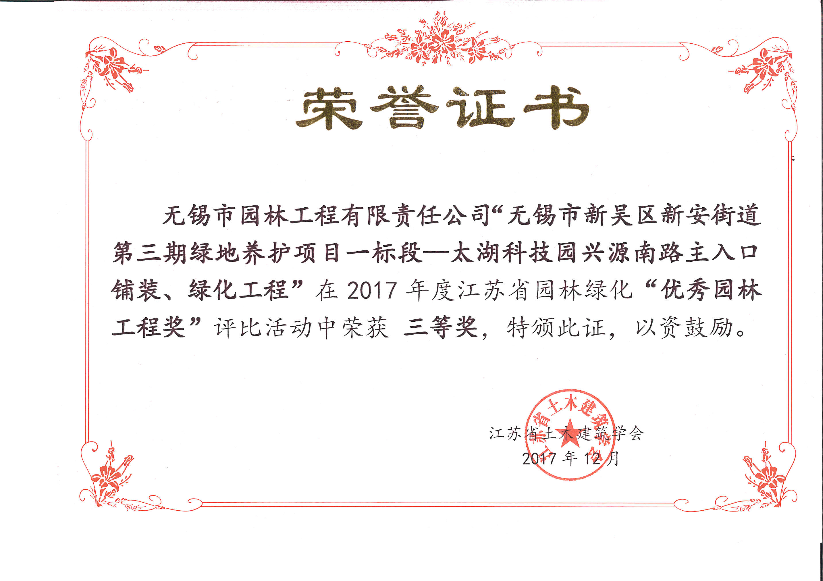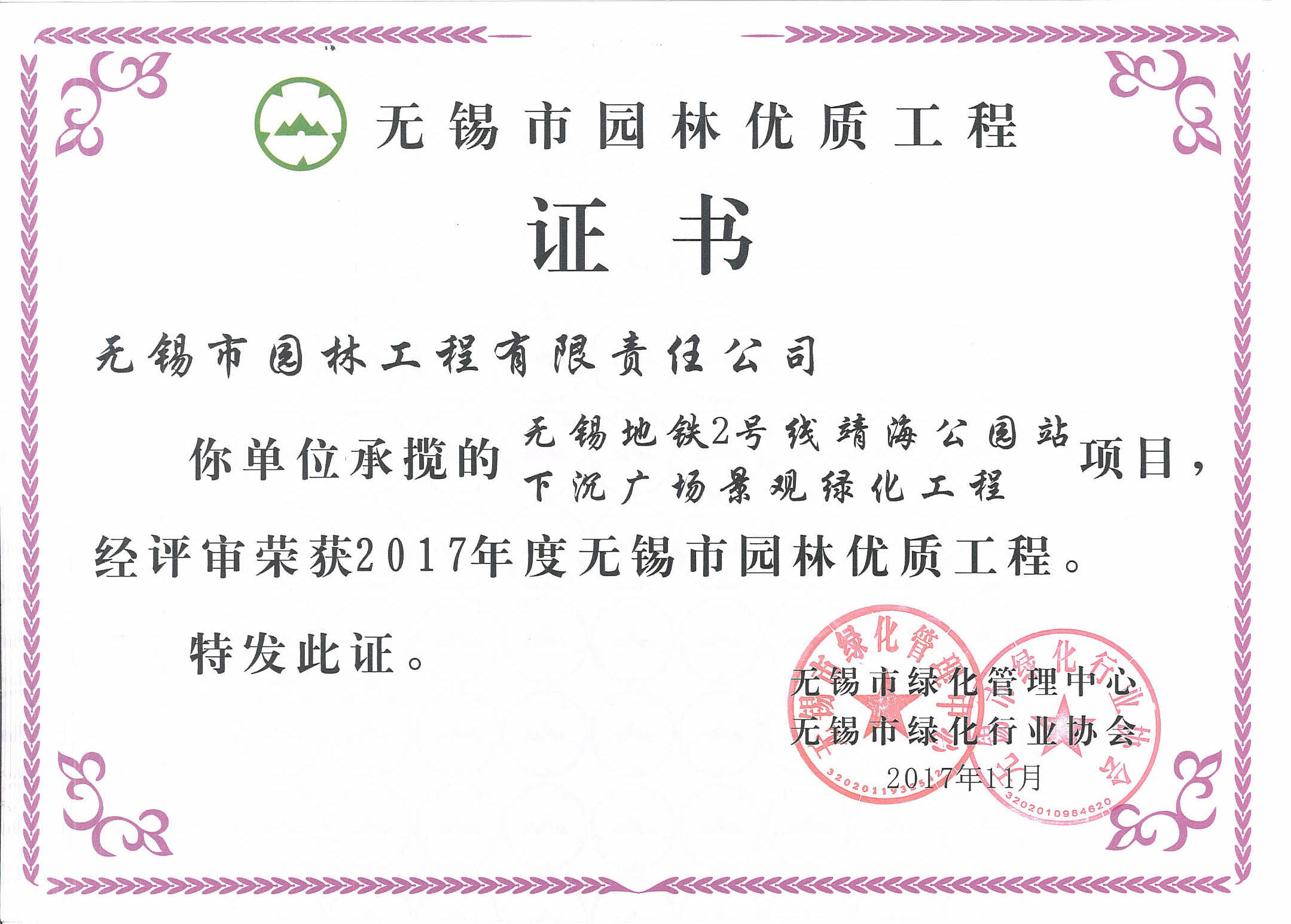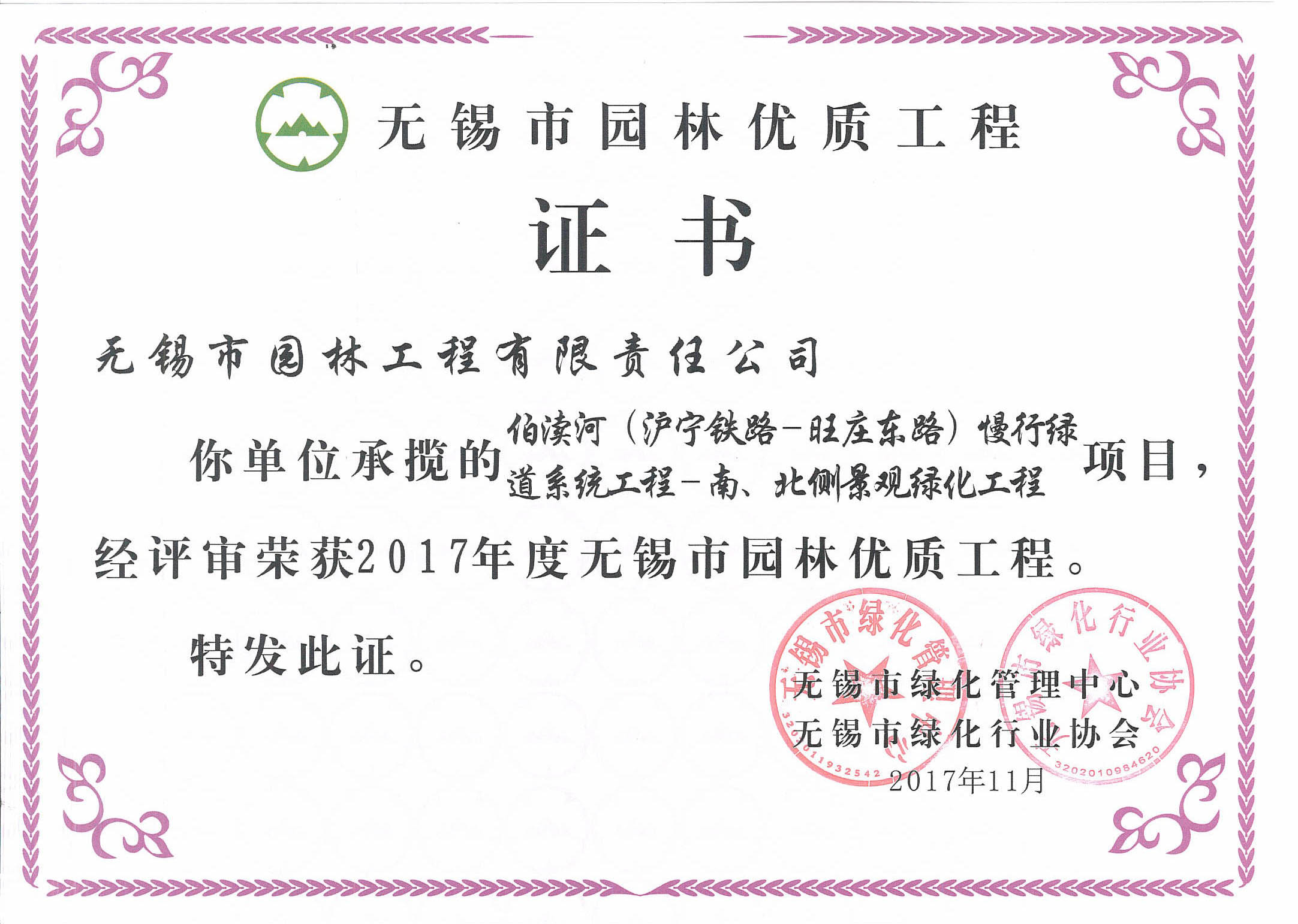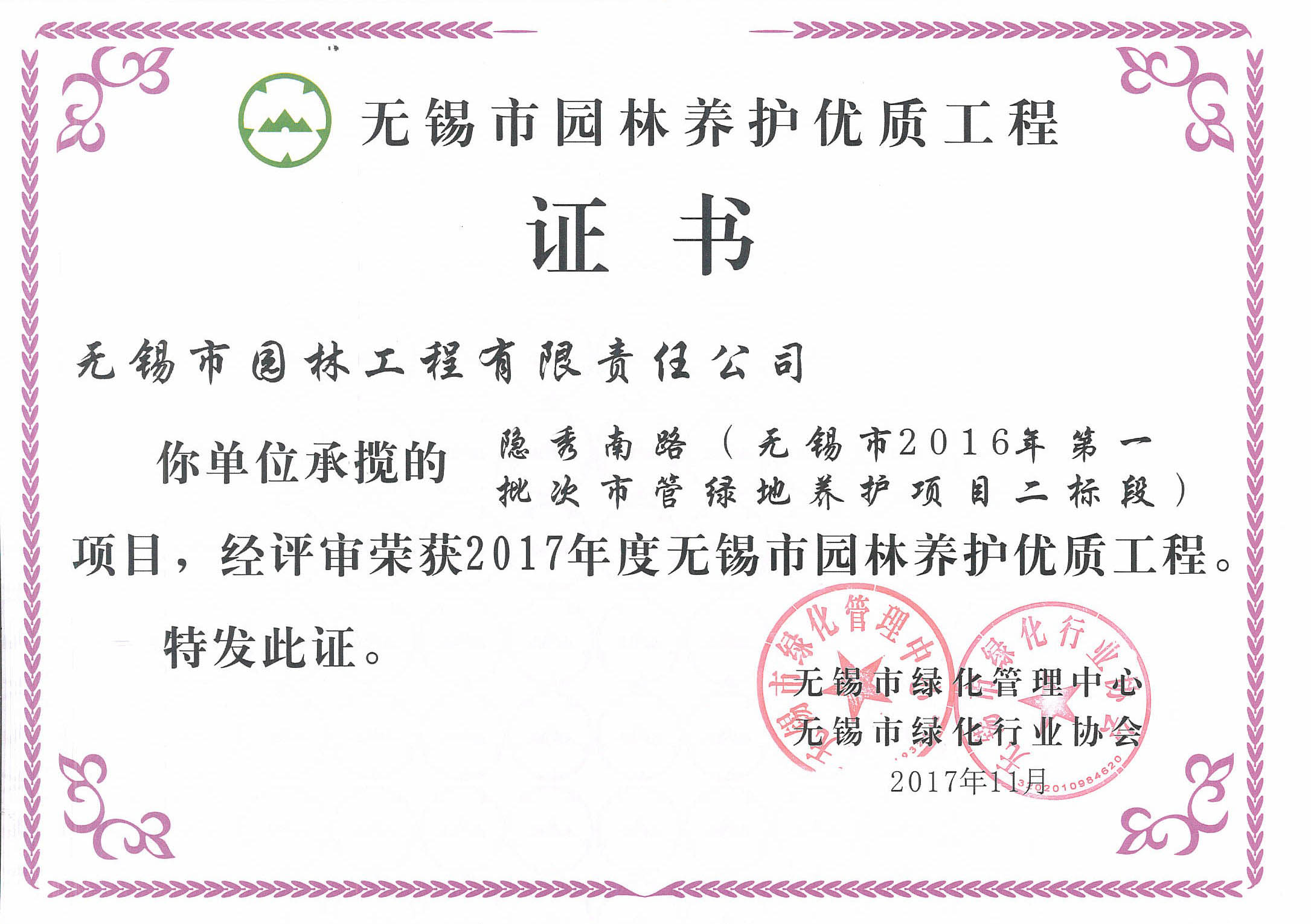 2016揚子杯——無錫地鐵1號線沿線景觀綠化工程三標