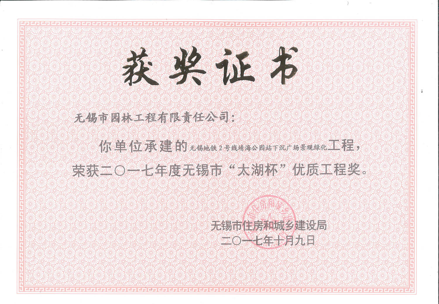 2017年度無錫市太湖杯優質工程