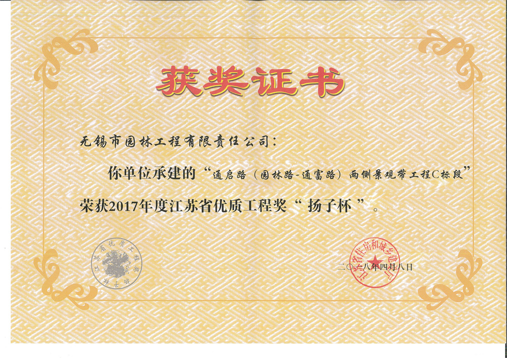 2017“揚子杯”—通啟路兩側景觀帶工程C標段