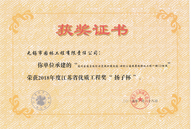 2018揚子杯——通州區通呂運河示范段環境改造-世紀公園段景觀綠化工程一期CD標段